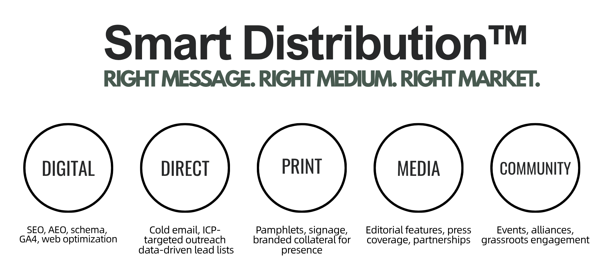 Smart Distribution is how we bring your systems, content, strategy, and technology into the world in ways that scale intelligently. Once your strategy and systems are built, we distribute them through the channels that matter. Smart Distribution ensures your message, technology, and customer experience reach the right people at the right time.